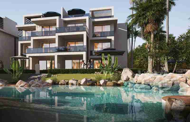 • Ground-floor gardens built above lagoon level for better views and privacy