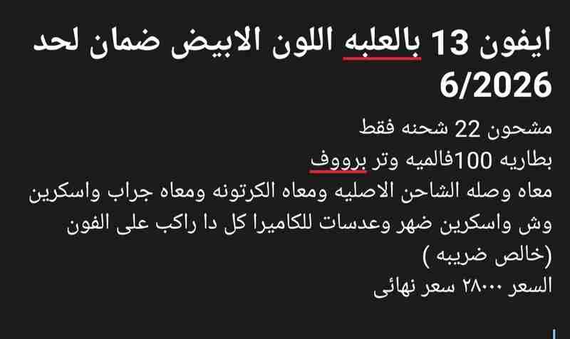 ايفون 13 بطاريه 100 مشحون 22 شحنه فقط خالص ضريبه