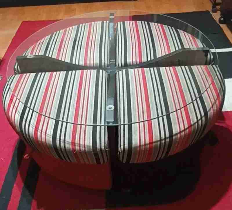 ترابيزة زجاج وخشب اسود قطر متر بأربع بفات ربع دائرة عمولة مفكو حلوان كالجديدة