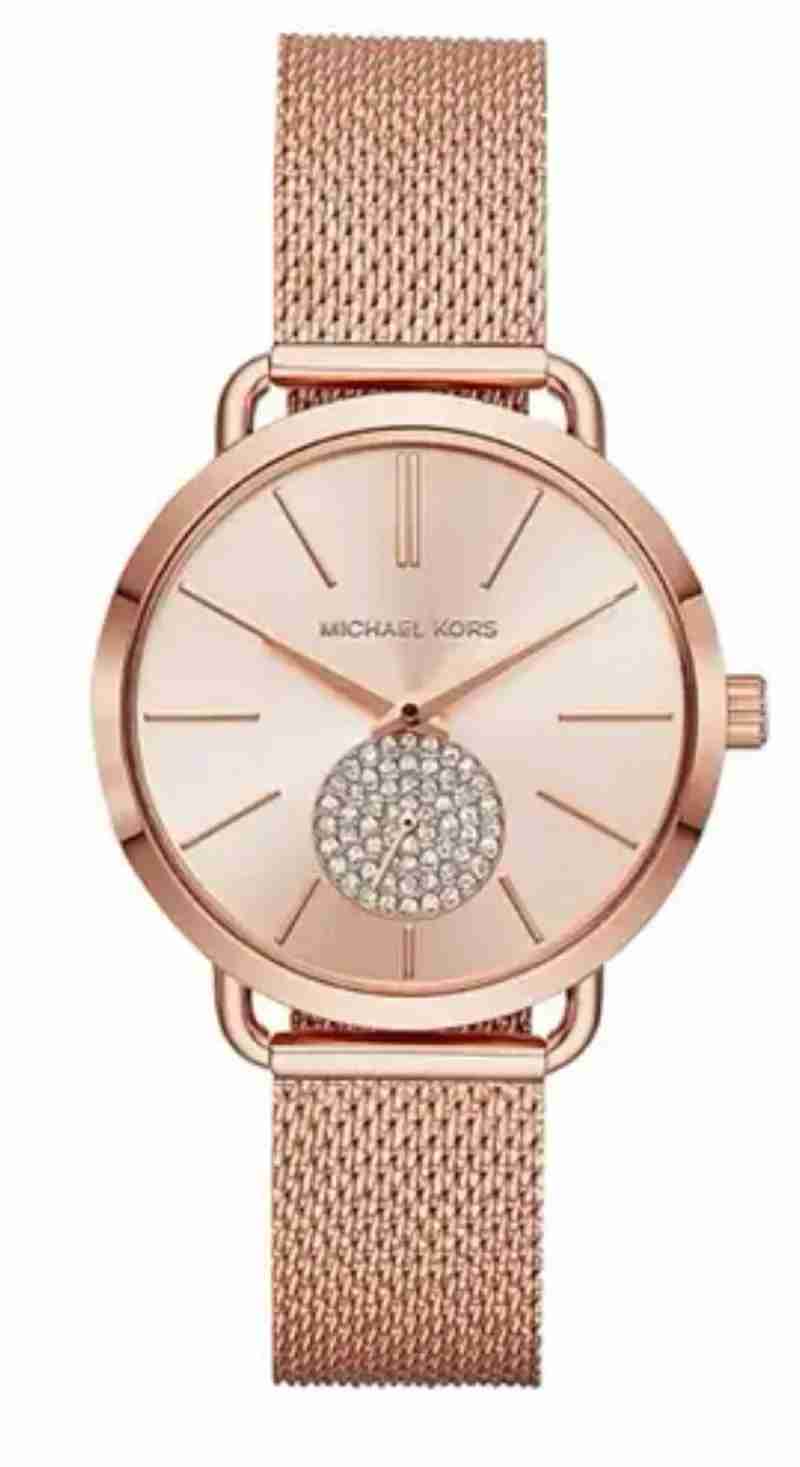 ساعة مايكل كورس Michael Kors حريمي أصلية برقم تسلسلي ع ظهر الساعه استعمال ايام لم تفتح لوضع البطاريه بدون علبه موديل ( بورشيا ) MK3845 Portia