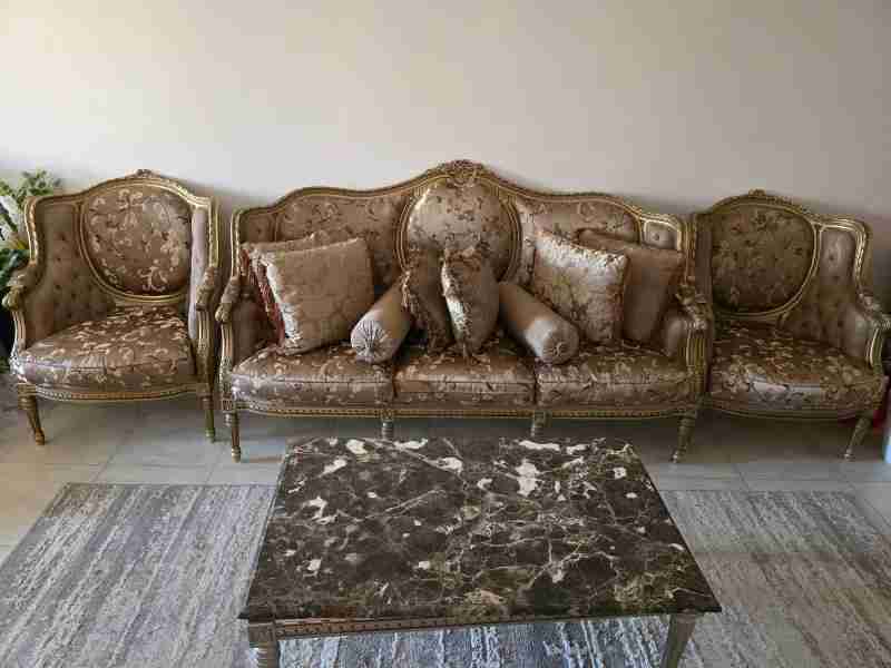صالون مذهب كنبه كبيره وكرسيين بحاله جيده جدا