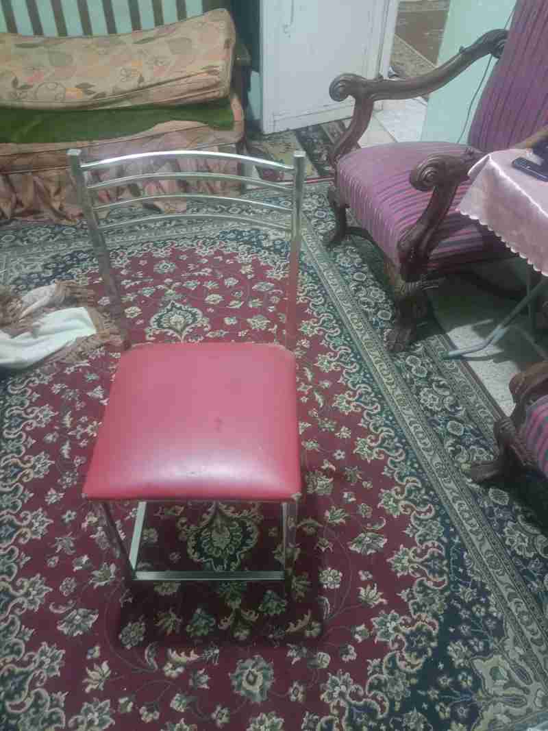 كراسي وترابيزه استانلس بالكامل معاها 6 كراسي في 3 منهم ظهر مقطوم محتاج يتلحم فقط تنفع لأي مطعم كشري مشاوي حواوشي او مطبخ او لأغراض متعدده