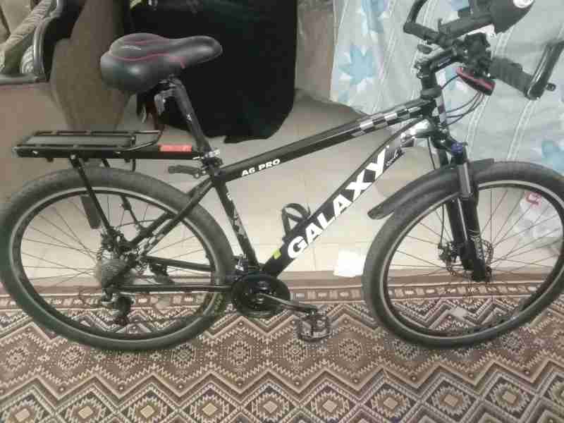 بسم الله الرحمن الرحيم وبيه نستعين للبيع عجله جلاكسي a6pro مقاس 29 مونتم العجله ممتازه جدا استعمال شهرين فرامل ديسك امامي وخلفي مسعدين لوك 21سرعه 7سرعات خلفي و3امامي مطلوب فيها 5500جنيه
