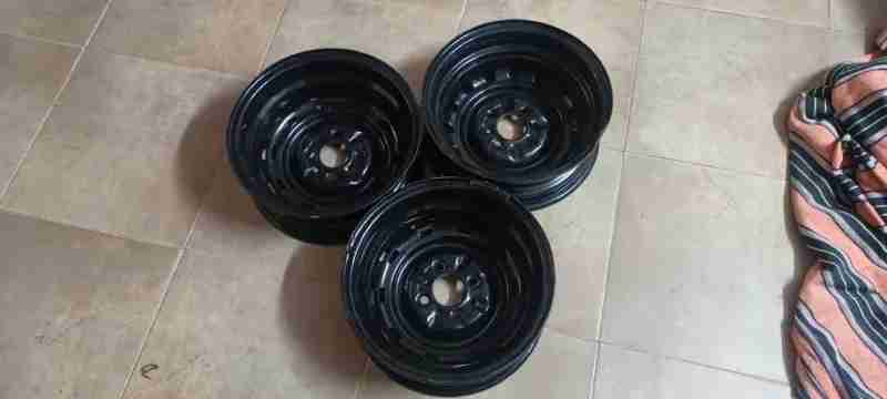 عدد ٤ جنط حديد مقاس ١٣ ومعاه ٢ فردة كاوتش