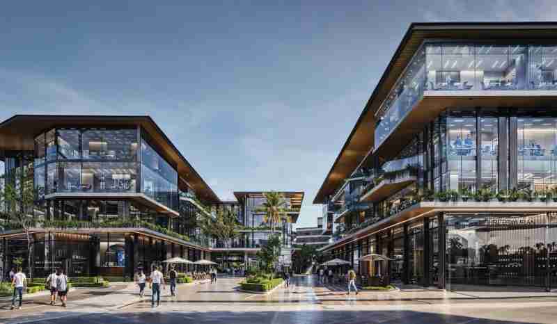 التصميم: تصميم عصري عالمي يتضمن بلازا مركزية ومساحات خضراء، مع استشاري هندسي (LDP) واستشاري تسويقي (ETQAN).