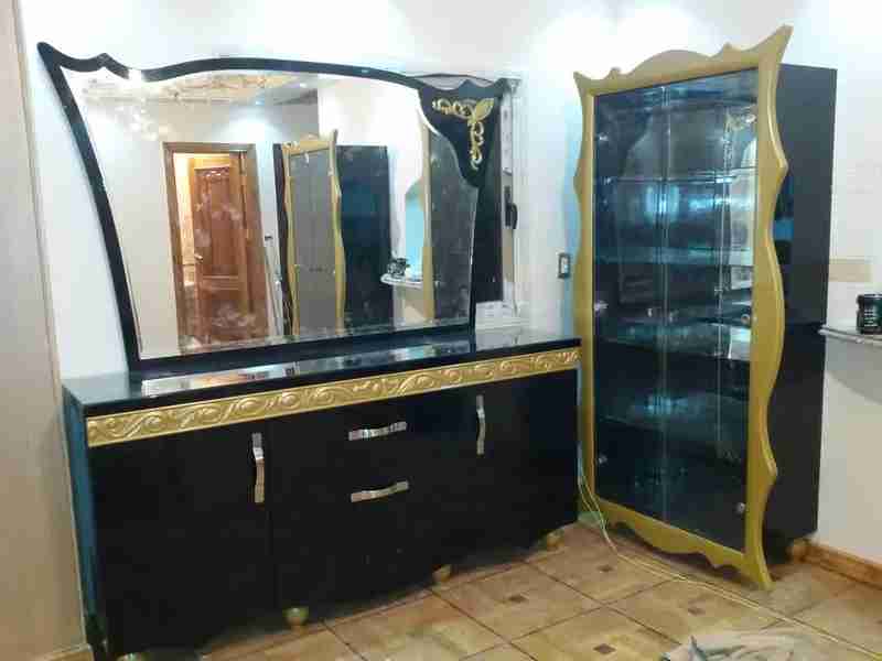 غرفه سفره عموله عباره عن طرابيزه سفره بال٨ كراسي وبوفيه كبير واثنين نيش
