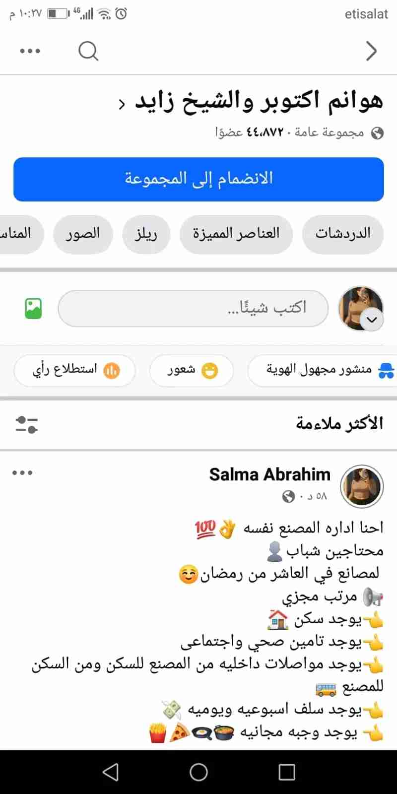 📢 مطلوب عمال تعبئة وتغليف فورًا 🧑🔧💪 في مصانع كبرى بالعاشر من رمضان 🏭 💰 مرتب مجزي + سلف يومية 🏠 سكن متوفر للمغتربين 🍔 وجبة يومية مجانية 🕐 عدد ساعات العمل: 12 ساعة 👥 السن: من 18 إلى 45 سنة 🪪 التقديم بالبطاقة فقط – بدون أي مصاريف مقدم 📩 اللي حابب يشتغل يتواصل في الخاص للتفاصيل 🔥