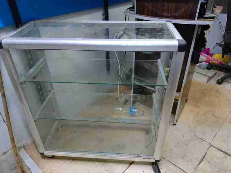 مكتب كاشير استعمال خفيف وبترينه عرض زجاج مقاس 110*110