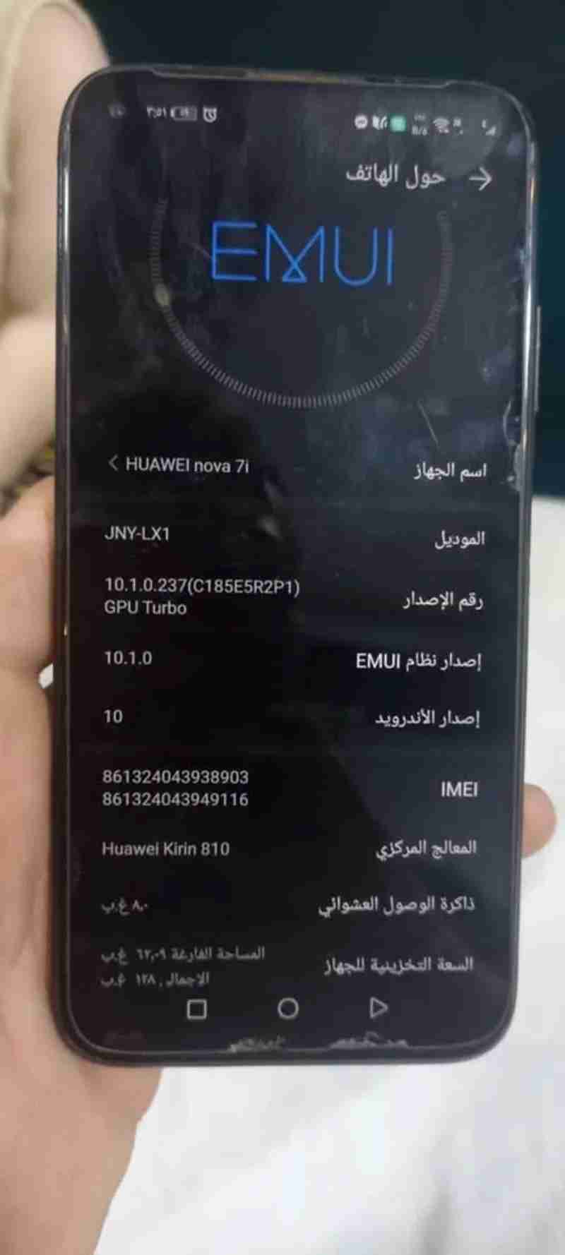 موبايل هواوى نوفا 7i الجهاز شغال بسم الله ماشاء الله بصمة طلقة الشاشة تمام والصوت تمام كانة جديد رام 8 مساحة 128 جيجا ومفيش علية ضريبة بس فاضى من غير علبة ولا شاحن هو مغير شاشة اصلية خلع يا جماعة اللى فى الصورة دة من الاسكرينة .